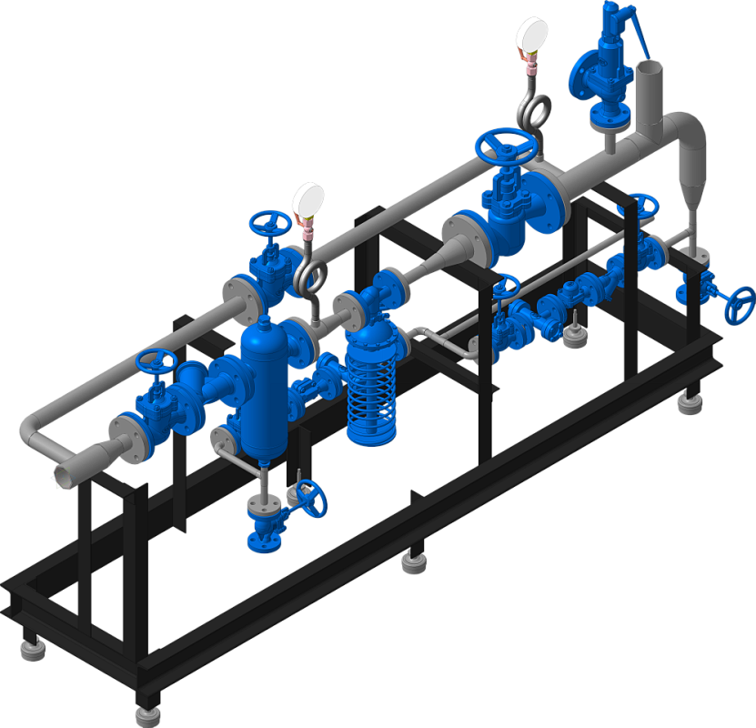 Редукционные, редукционно-охладительные, охладительные установки в сборе на раме |